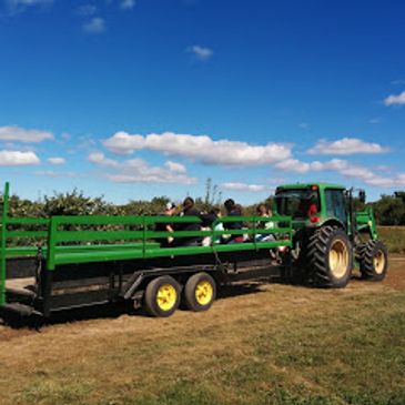 The wagon ride takes you to the corn maze, apple orchard and pumpkin patch or it's a short distance if you prefer to walk.